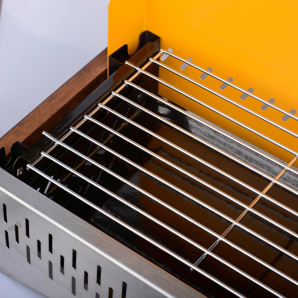 محصول مجهز به یک صفحه توری فلزی نچسب با قابلیت جداسازی است که برای گریل کردن مرغ، گوشت، ماهی و انواع سبزیجات ایدهآل است و امکان جایگزینی ذغالها به راحتی فراهم میشود.