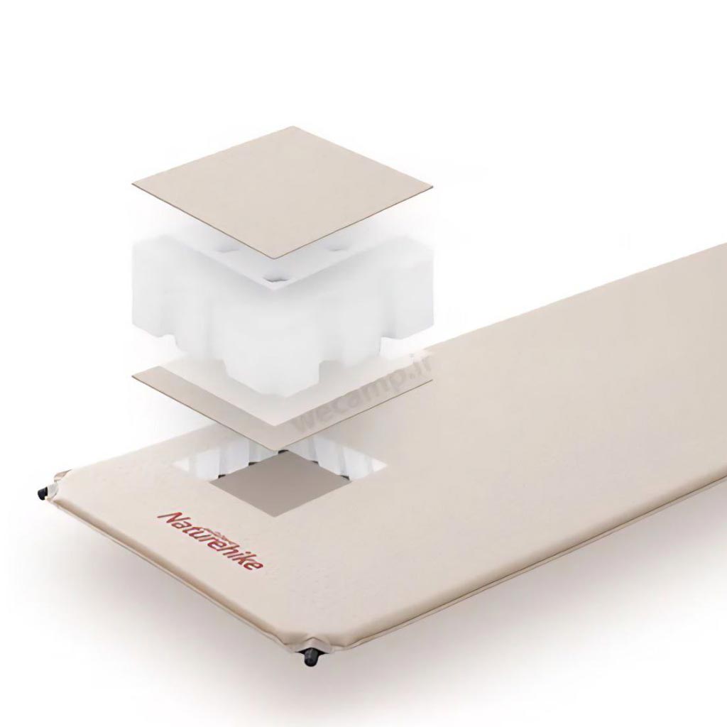 زیرانداز بادی نیچرهایک مدل Two Person Self-inflating Cushion از چندین لایه متشکل از رویه ی کتان، اسفنج و PVC ساخته شده است.