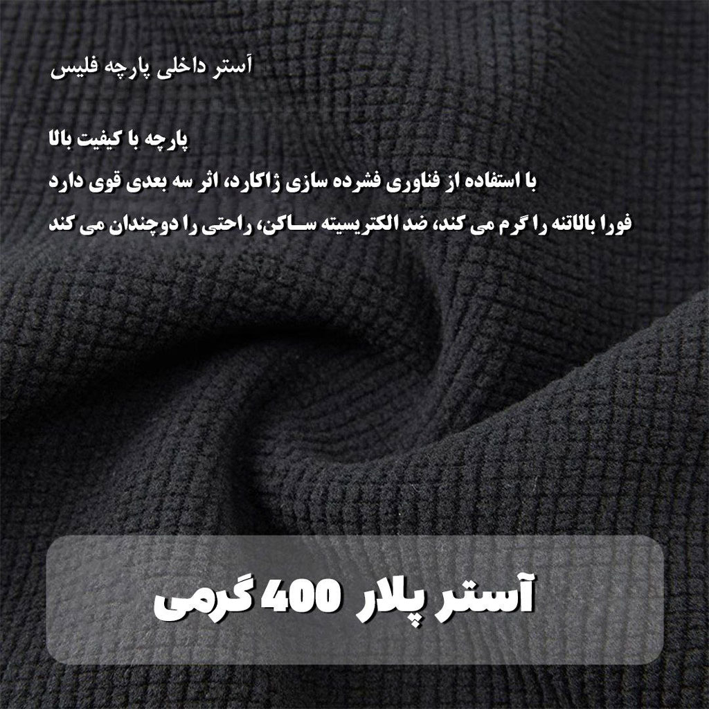 استفاده از پارچه فلیس با وزن 400 گرم نه تنها گرما را به خوبی در داخل کاپشن نگه میدارد، بلکه با بافت نرم و لطیف خود حس راحتی فوق العادهای را به ارمغان میآورد. این ویژگی، کاپشن را به گزینهای عالی برای استفاده در فعالیت های روزمره یا ورزش های زمستانی تبدیل کرده است.